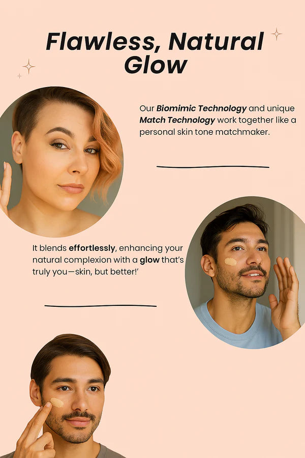 Join thousands of happy customers around the world who trust our biomimic foundation for their everyday beauty routine. This revolutionary formula adapts seamlessly to your unique skin tone, giving you a flawless, natural glow with minimal effort.