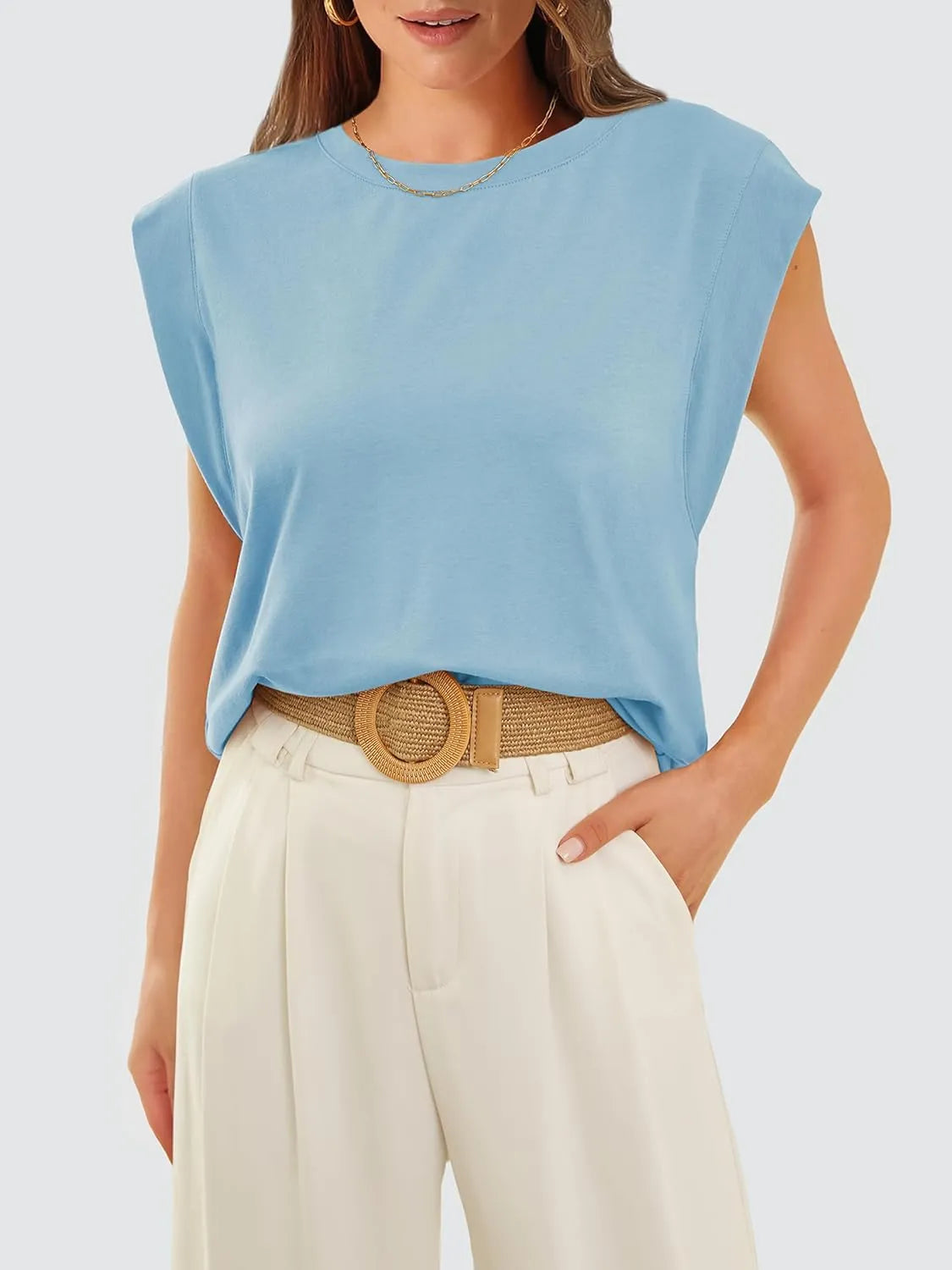 Tank tops and crew neck for a timeless style.This top will become your favorite summer top! The armpit/shoulder design gives it a fun look. The material is very soft and wrinkles free. It has a nice loose fit. Its very versatile that you can either wear it casually or dress it up.